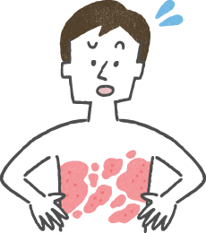 じんましんとは、皮膚の一部が突然に赤くくっきりと盛り上がり(膨疹ぼうしん)、しばらくすると跡形なく消えてしまう病気です。かゆみを伴うことがほとんどです。