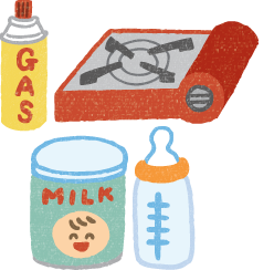 赤ちゃんがいらっしゃる家庭では、ミルクと離乳食も必要です。 - 普段から食べ慣れた食品を買い置きし、食べたら買い足す